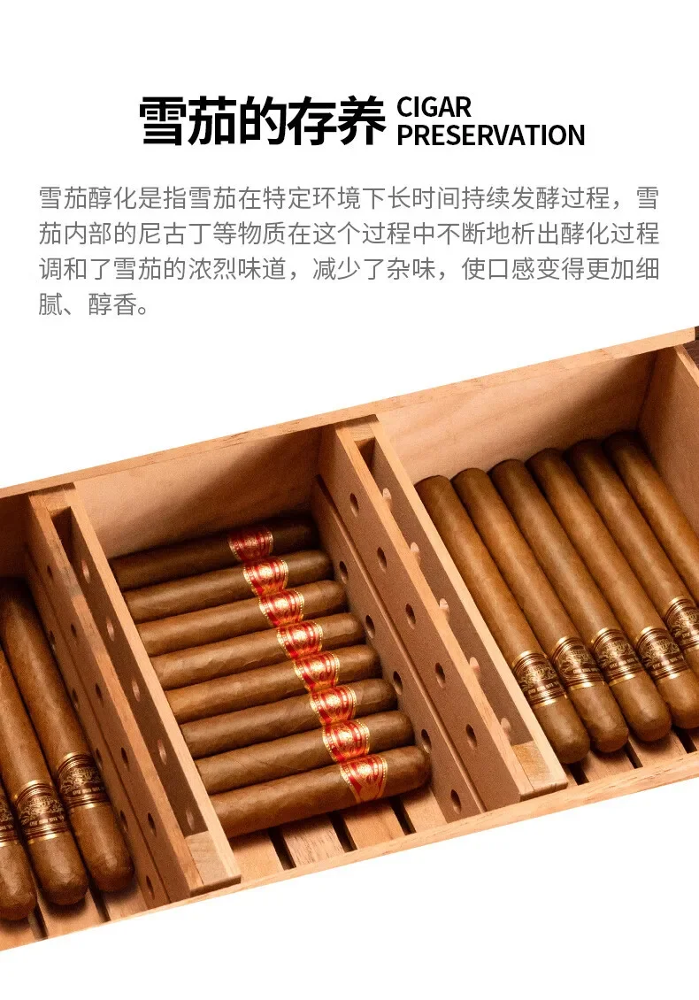 Spanish Cedar Wood Cigar Humidor Paintless Alcoholic Cigars 50PCS Cigarette case with Compartment