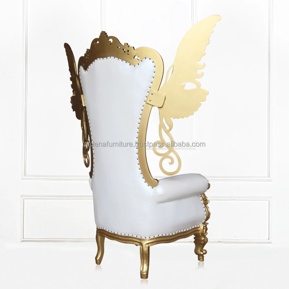 Special Winged Antique White Wooden Throne Chairs for Events, Parties, Hotels, and Weddings at Wholesale Prices.