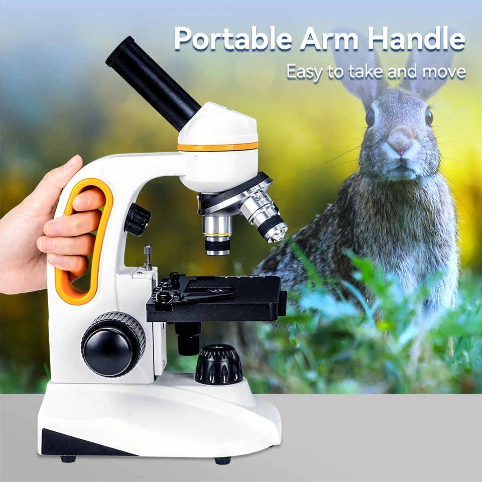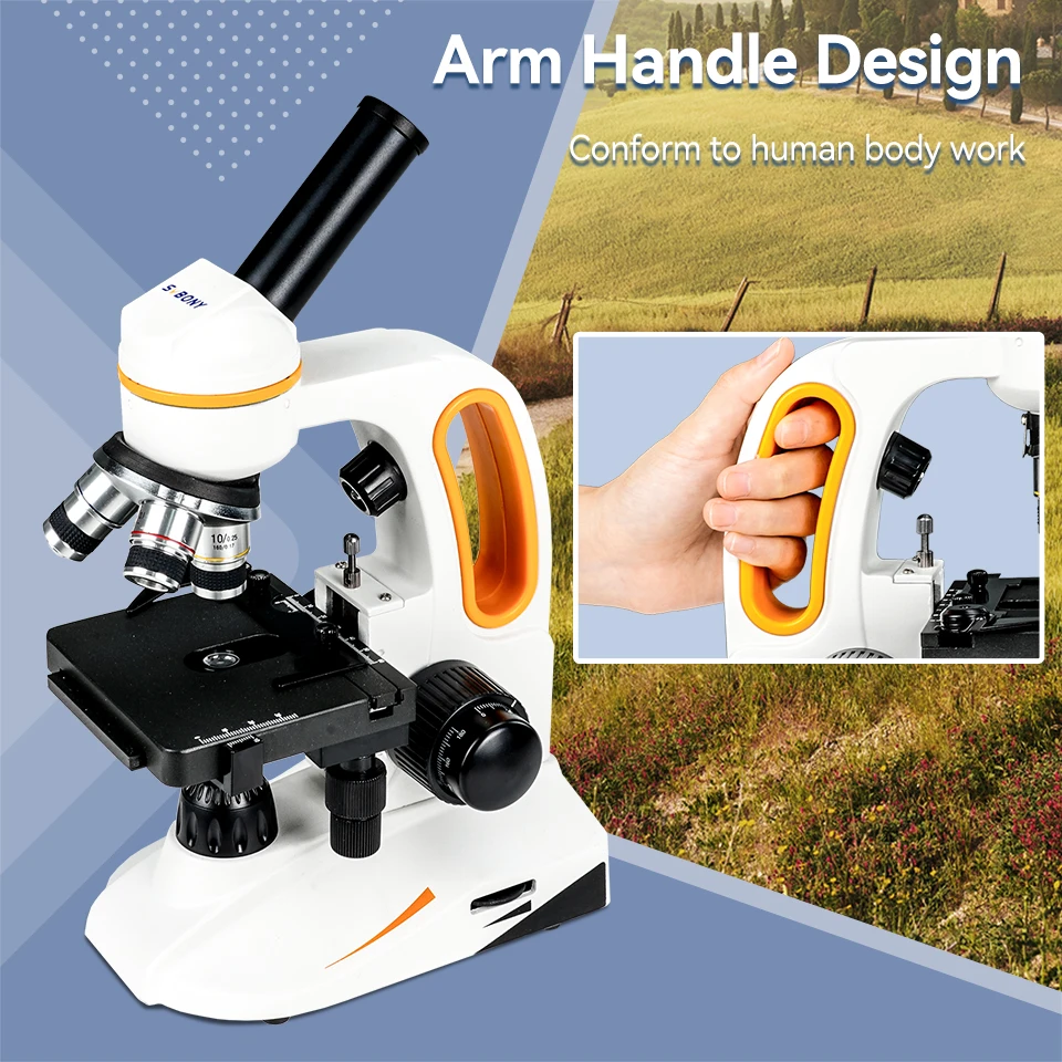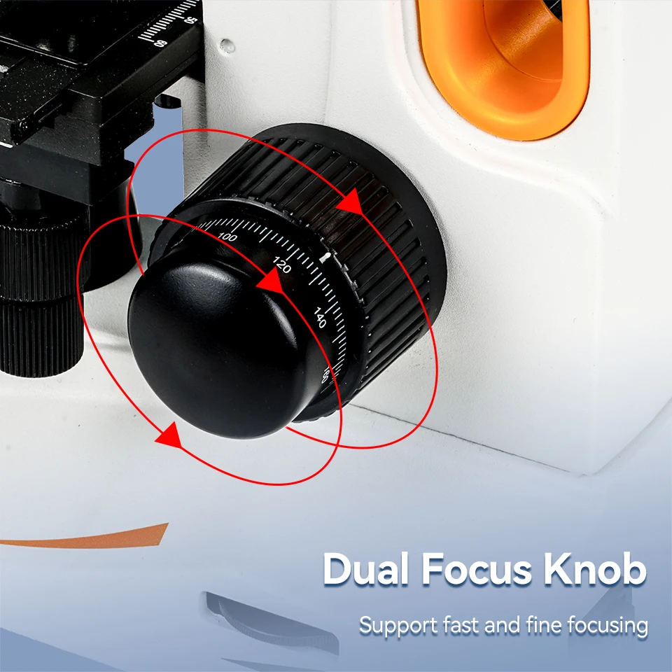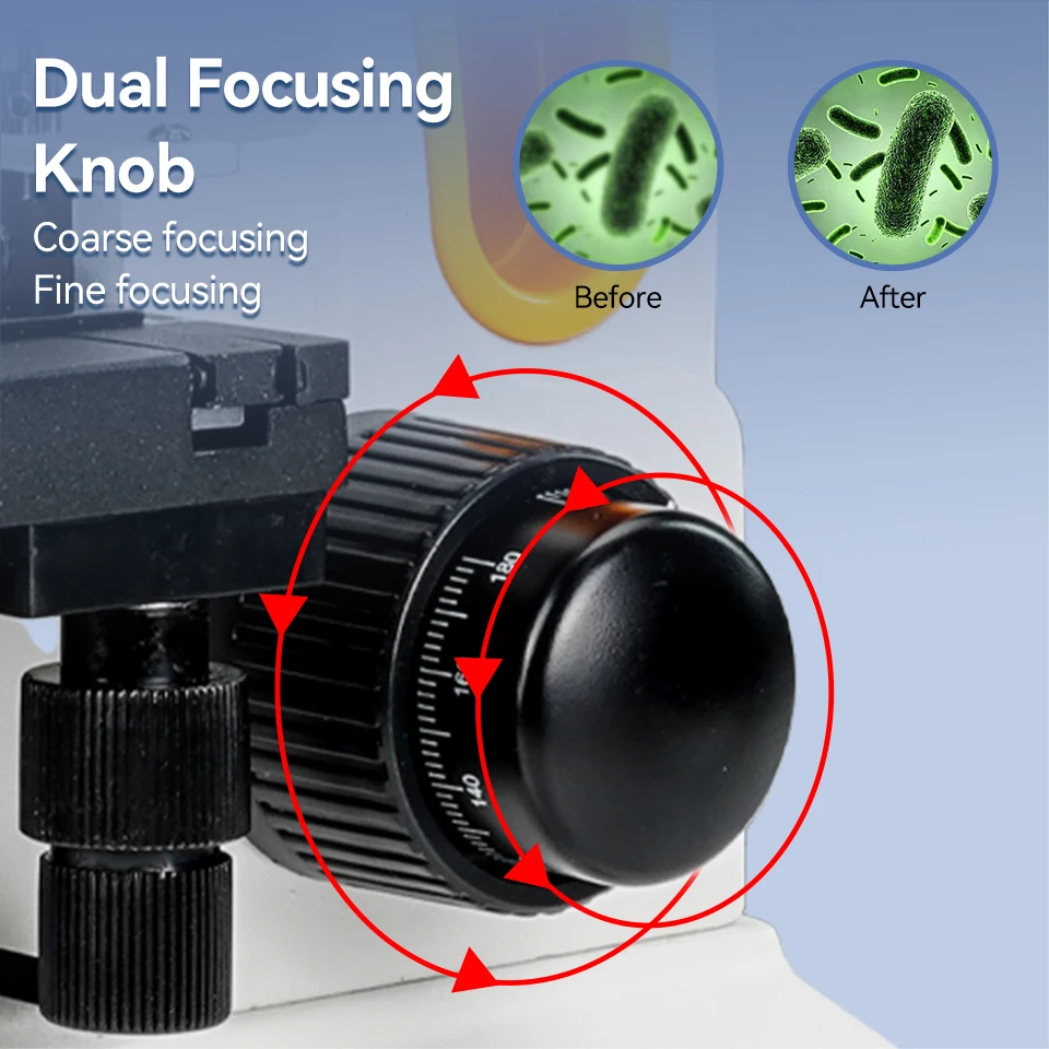 Dual focusing knob; the compound monocular microscope has fast and fine focusing; the focusing knobs on both sides are convenient for you to focus on the specimen quickly or finely and get a clear image