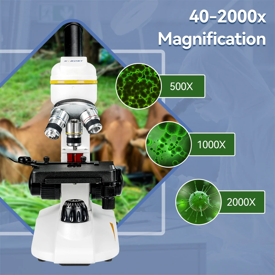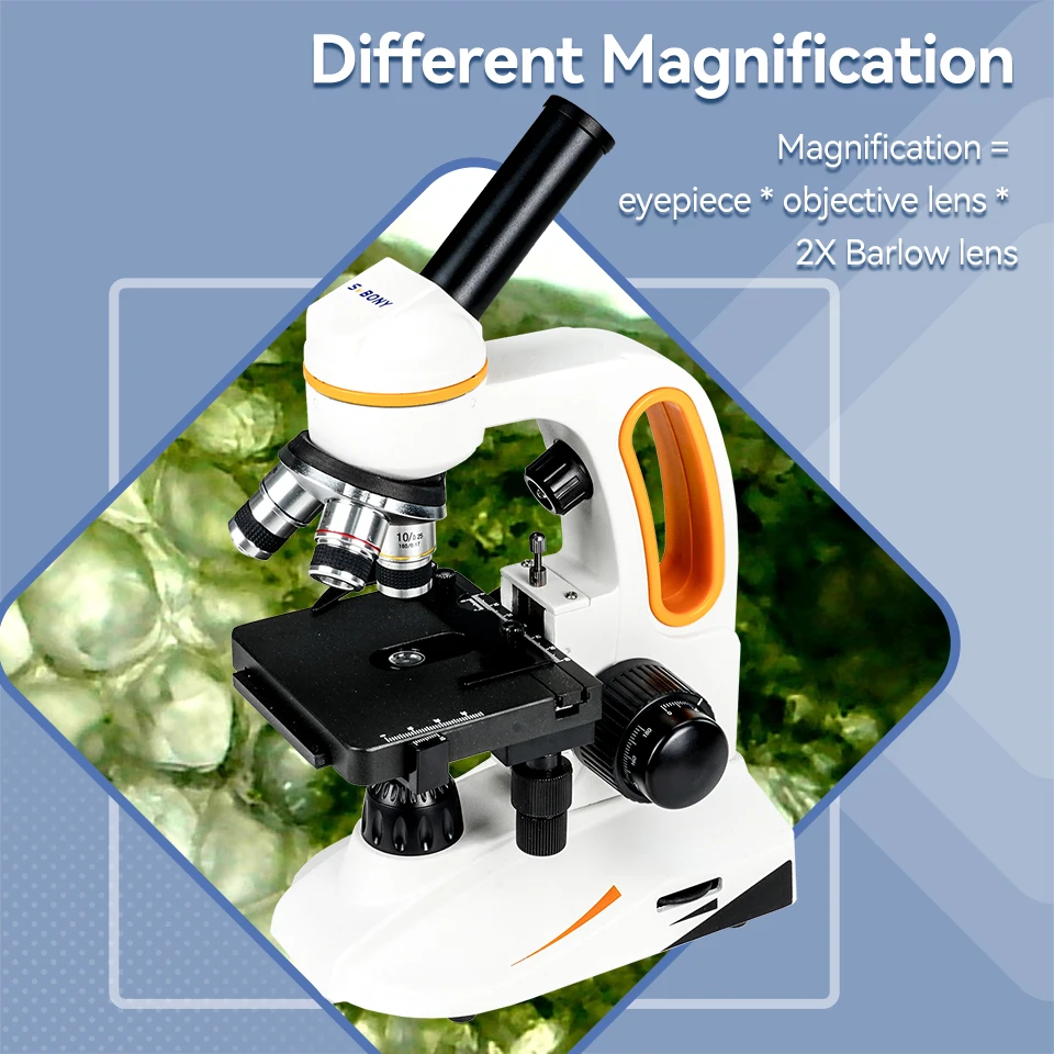 Introducing the SVBONY SM202 Compound Monocular Microscope, a high-quality and versatile tool for all your microscopy needs. With a magnification range of 40-2000x, this microscope allows for detailed observation of the smallest of specimens.