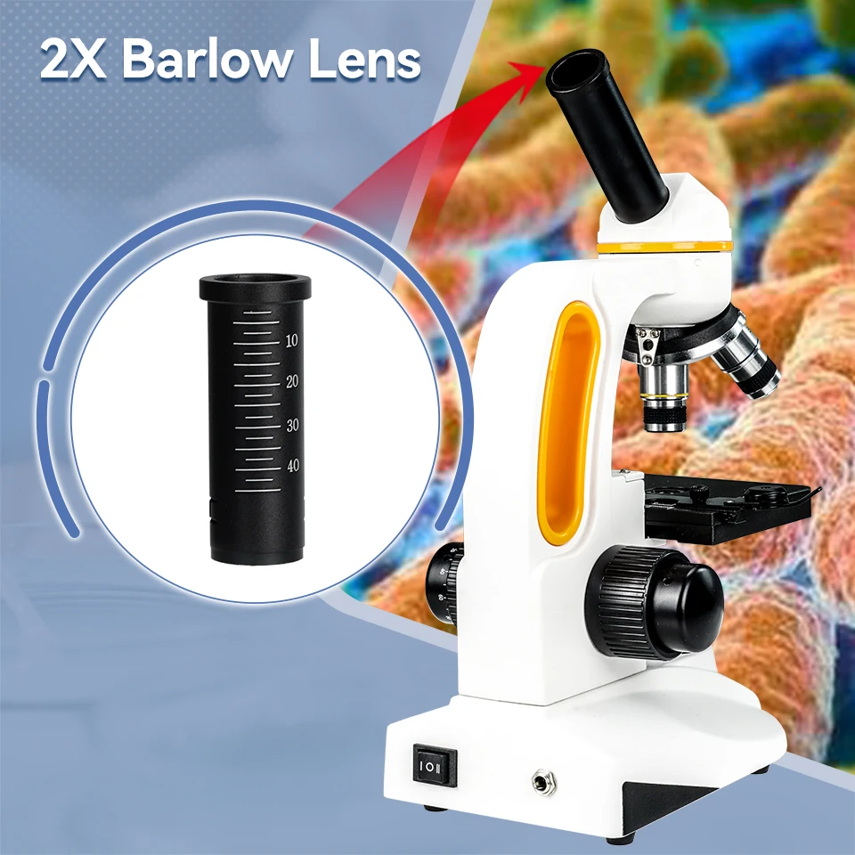 eyepieces and 4x; 10x; 40x objective lenses; cooperate with 2X Barlow; the magnification can up to 2000X; micron-level magnification can clearly observe the cell structure of bacteria; toxins; protozoa