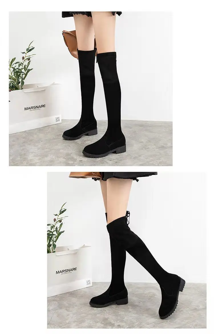 Thigh high boots, also known as over the knee boots, are a fashionable and stylish option for women during the winter season. These boots are flat and stretchy, providing a sexy and sleek look. They are available in black and are perfect for pairing with various outfits. Women can wear these boots with dresses, skirts, or pants to create a trendy and chic appearance. These boots, also known as botas mujer in Spanish, can also be considered as sneakers due to their comfortable yet fashionable design.