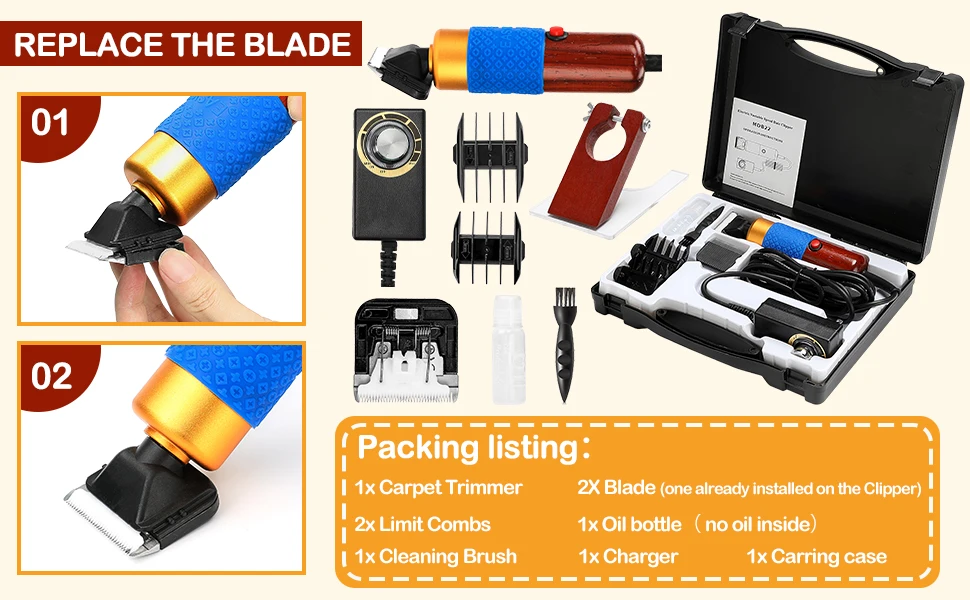 Maintenance on carpet carving clippers is simple: Keep the machine clean after every use;Oil it before and after use; Store in a safe space away from heat, dust, and water.