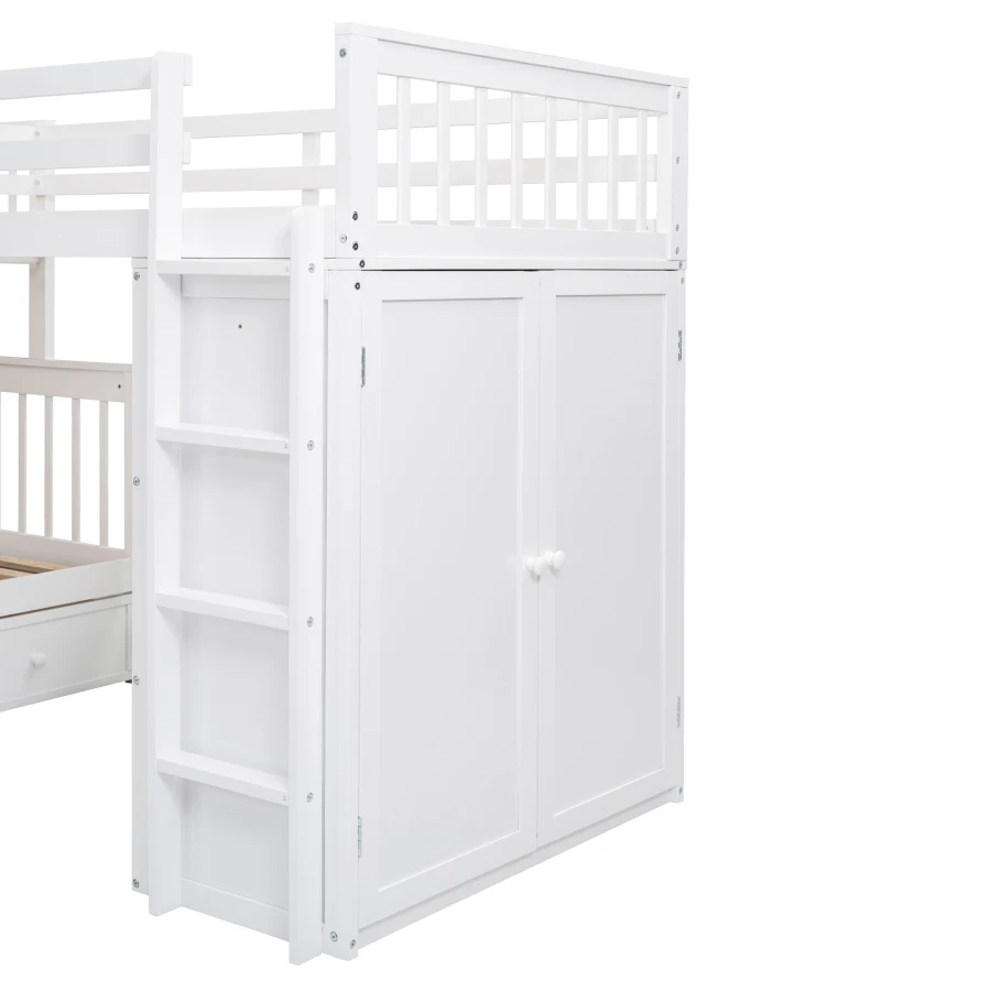 [Maximized space] The bunk bed takes up minimal space for the spontaneous sleepover guest. Even better, the drawers and shelves in staircase offers extra space for clothes and bedtime stories. It takes advantage of the floor space, and allows for a cozy rest, extra work and play space and makes a great piece of furniture for growing families.