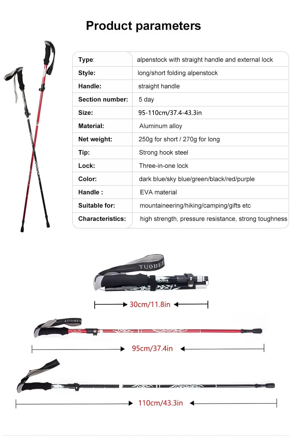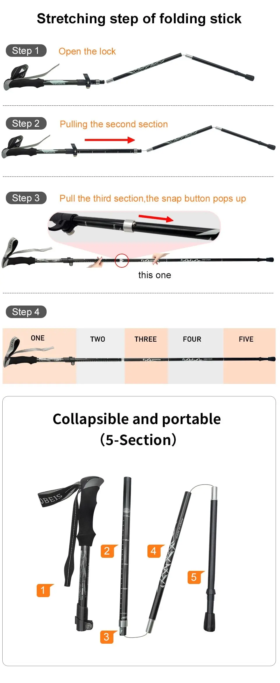 Crafted with high-quality materials, the WESTTUNE Outdoor Fold Trekking Pole is built to last and withstand the elements. Its sturdy construction provides stability and support on even the toughest trails, making it an essential tool for hikers, backpackers, and outdoor enthusiasts.