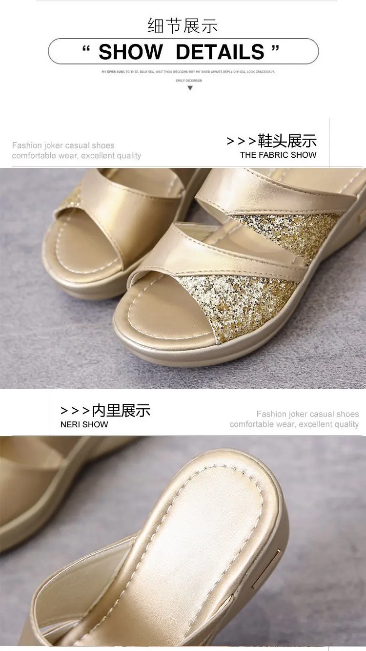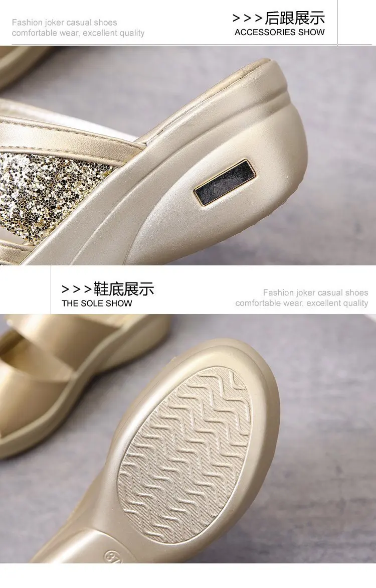 Women’s Glitter PU Wedge Platform Casual Slingback Sandals: Comfortable Spring/Summer Slip-Ons