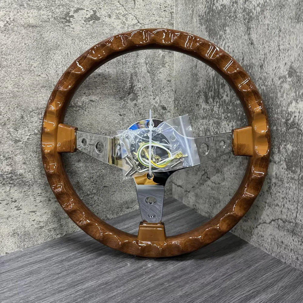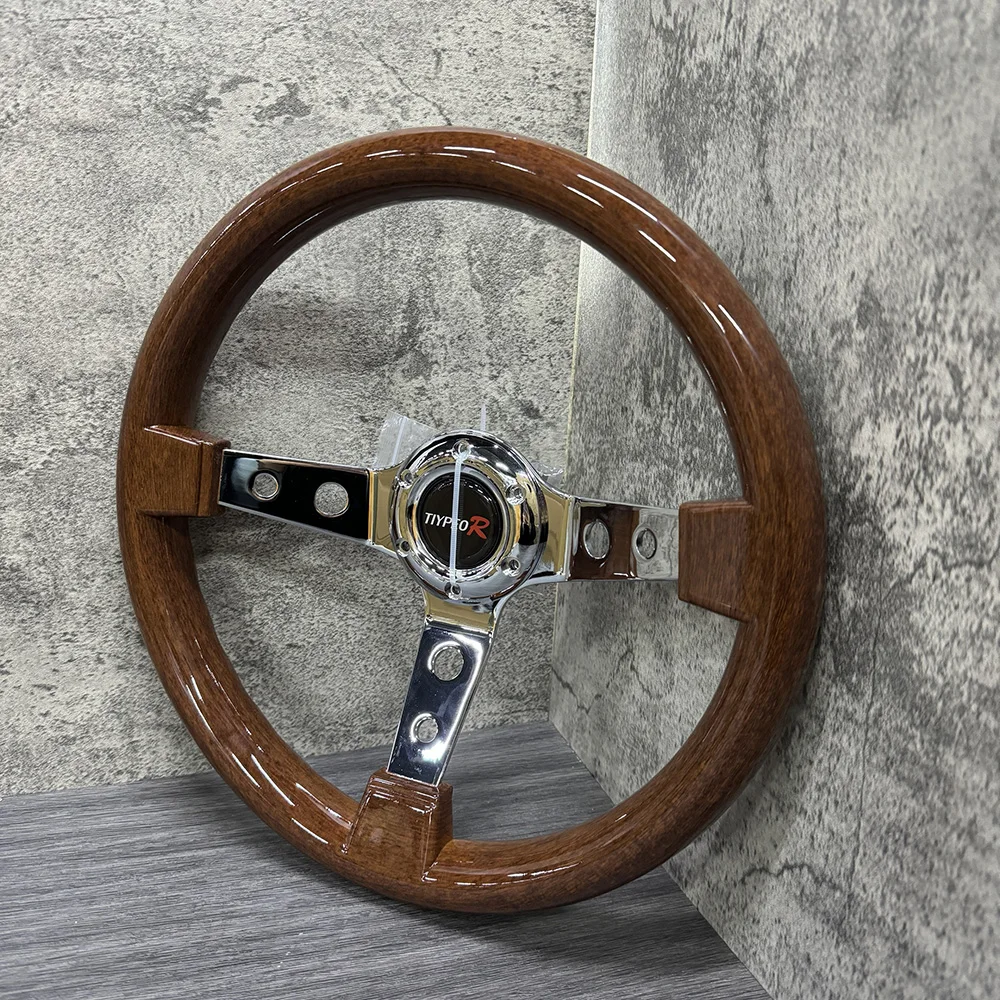 The Wood Style Steering Wheel is a universal 14-inch 350mm classic vintage car steering wheel with a deep dish design. It features a stylish wood finish that adds a touch of elegance to any car interior. The deep dish design provides a comfortable grip for easy steering control. This steering wheel is a versatile option that can be used in a variety of vehicles. Its classic vintage look makes it a popular choice for car enthusiasts looking to upgrade their steering wheel.