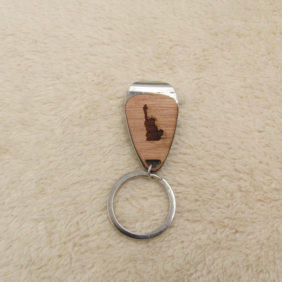 Wooden Beer Keychain Metal Bottle Opener Key Ring tower Status Of Libe…