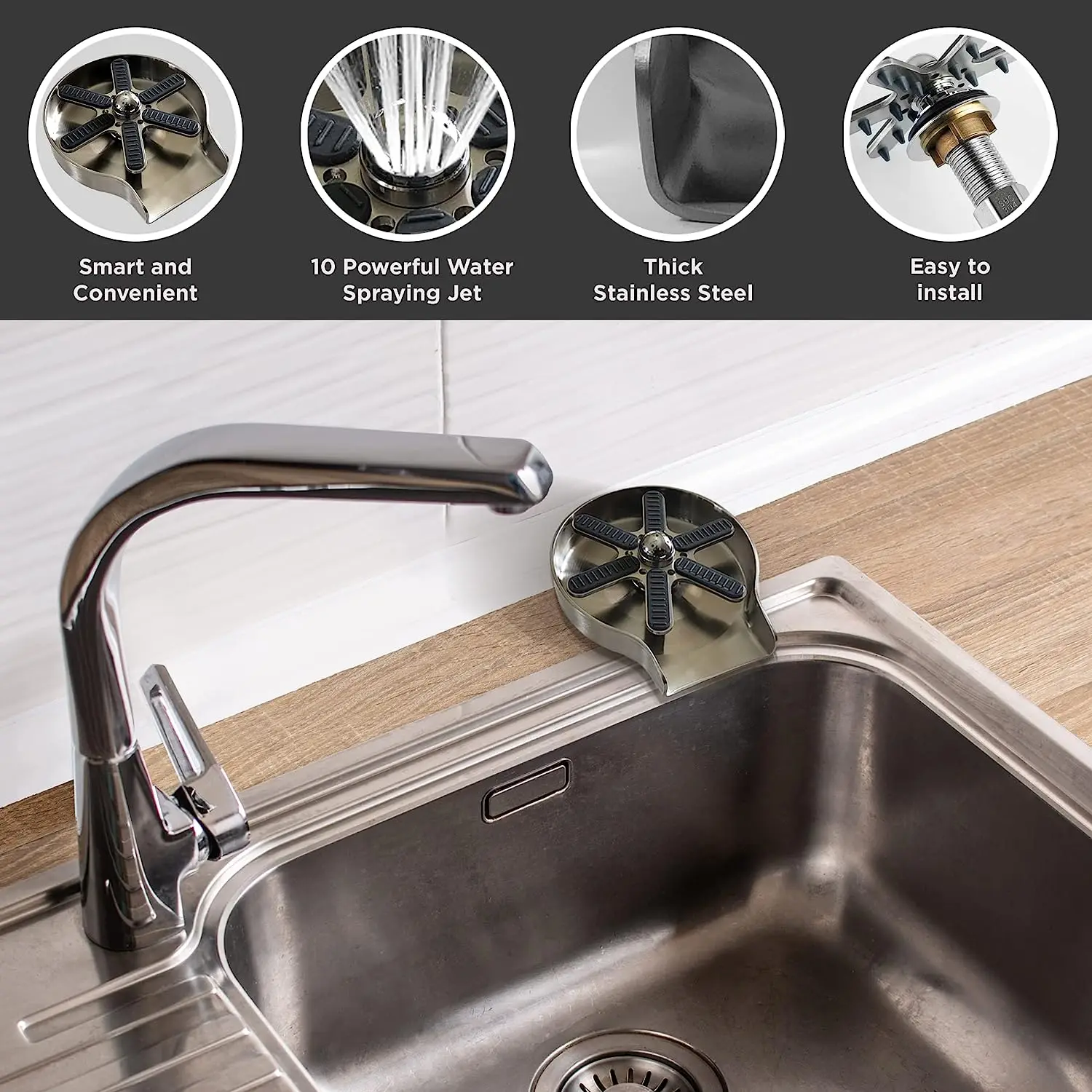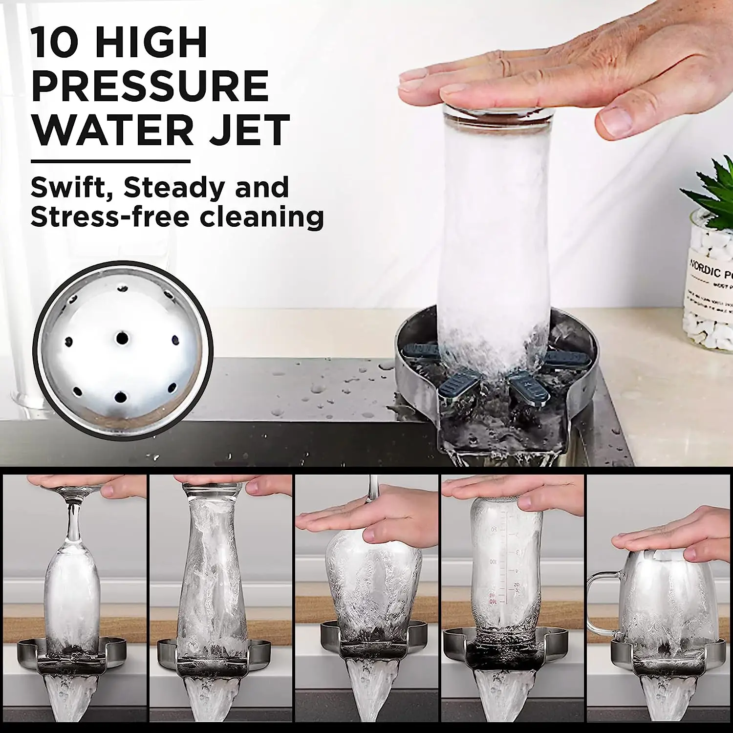 Introducing the ZAPPO Glass Rinser, the perfect solution for effortlessly cleaning all your cups and glasses in the kitchen sink. This innovative product is designed to fit comfortably in any standard kitchen sink, making it convenient and easy to use.
