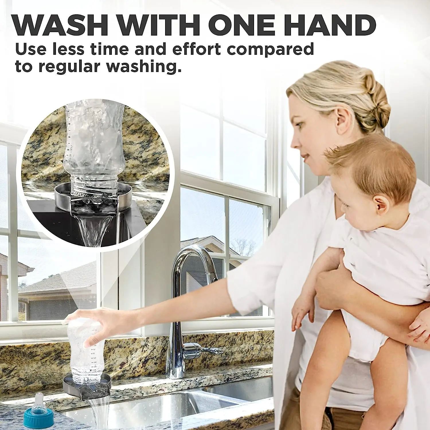 【Convenient and efficient】From wine glasses to baby bottles to travel cups, it conveniently rinses virtually any drinkware, so you can spend less time soaking and scrubbing. Brush Nickel finish resists water spots and fingerprints
